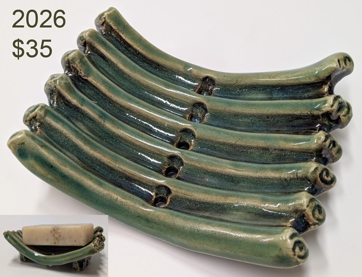 "They're functional as well as attractive," says Ken Gilberg, the artist. "So many quasi-soap dishes hold a bar in a goopy puddle."