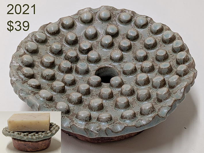 These handcrafted ceramic soap dishes catch a wet bar on the fly, extend its life, and keep sinks tidy. The soap will air dry and stay firm. "They're functional as well as attractive," says Ken Gilberg, the artist. "So many quasi-soap dishes hold a bar in a goopy puddle."