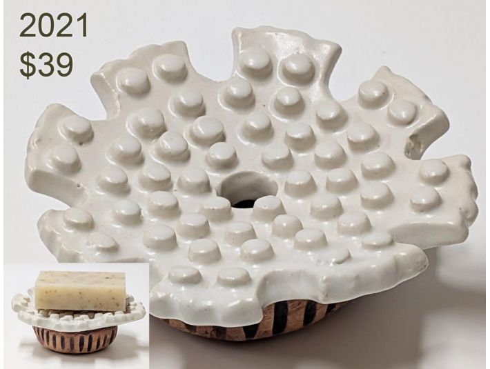 These handcrafted ceramic soap dishes catch a wet bar on the fly, extend its life, and keep sinks tidy. The soap will air dry and stay firm. "They're functional as well as attractive," says Ken Gilberg, the artist. "So many quasi-soap dishes hold a bar in a goopy puddle."