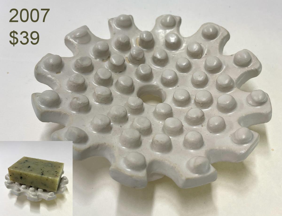 These handcrafted ceramic soap dishes catch a wet bar on the fly, extend its life, and keep sinks tidy. The soap will air dry and stay firm. "They're functional as well as attractive," says Ken Gilberg, the artist. "So many quasi-soap dishes hold a bar in a goopy puddle."