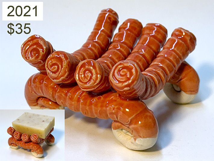 These handcrafted ceramic soap dishes catch a wet bar on the fly, extend its life, and keep sinks tidy. The soap will air dry and stay firm. "They're functional as well as attractive," says Ken Gilberg, the artist. "So many quasi-soap dishes hold a bar in a goopy puddle."