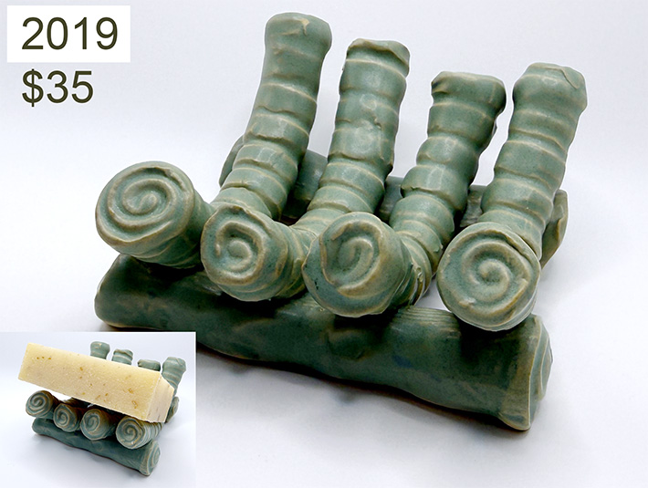 "They're functional as well as attractive," says Ken Gilberg, the artist. "So many quasi-soap dishes hold a bar in a goopy puddle."