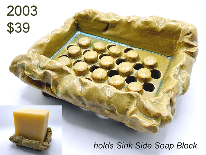These handcrafted ceramic soap dishes catch a wet bar on the fly, extend its life, and keep sinks tidy. The soap will air dry and stay firm. "They're functional as well as attractive," says Ken Gilberg, the artist. "So many quasi-soap dishes hold a bar in a goopy puddle."