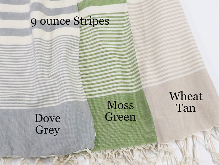 The lighter peshtemals,Ā 9 ounces, come in the Stripes design. The heavier, 15-ounce, have a Diamond pattern.Ā