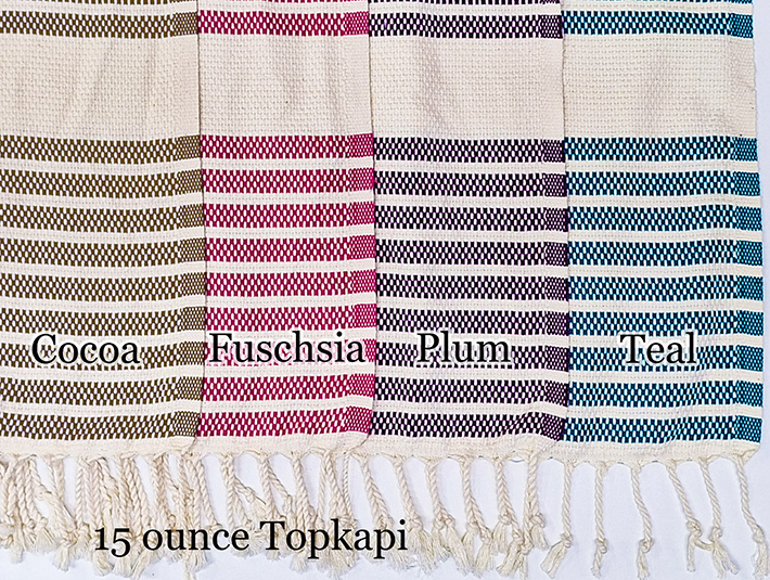 Enjoy these for your bath, pool, and beach. Great for camping. Less bulky than terry cloth, peshtemals fold up small. Also unlike terry cloth, sand doesn't stick to the fabric. Very long and wide, a peshtemal is large enough to make a wrap-around sarong.Ā